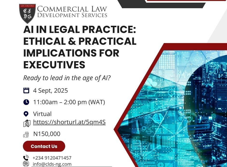 This specially curated course by Commercial Law Development Services (CLDS) is tailored for legal executives seeking to understand, assess, and lead the adoption of AI tools in legal environments. Rooted in both Nigerian realities and global best practices, the course will unpack the strategic, ethical, regulatory, and practical implications of AI in the legal space.
